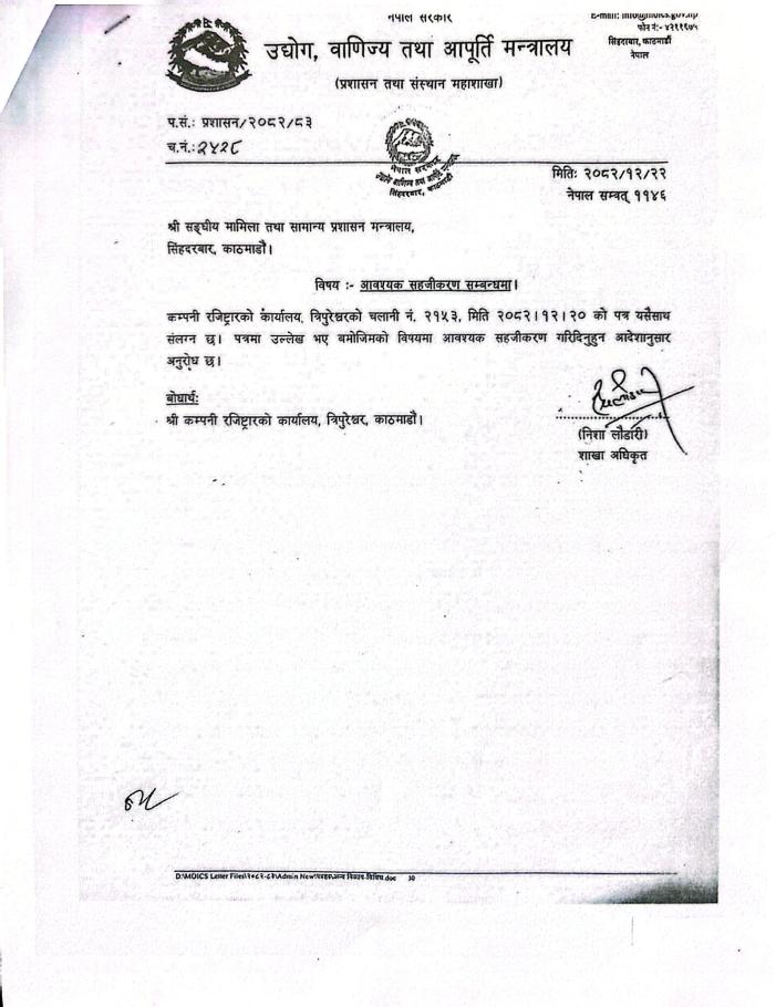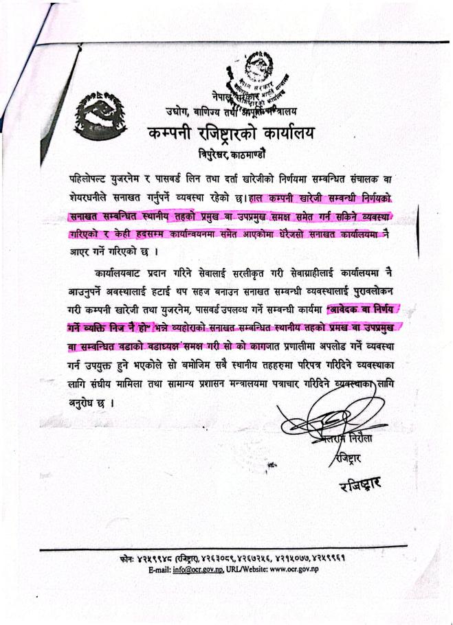 कम्पनी खारेजी सम्बन्धी निर्णयको सनाखत सम्बन्धमा ।