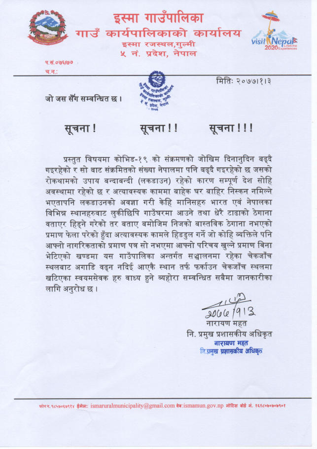 अत्यावस्यक कामकाजमा हिडडुल गर्दा परिचय पत्र अनिवार्य सम्वन्धि सूचना