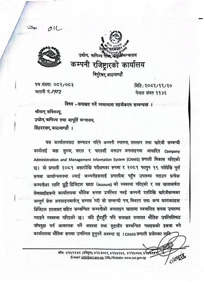 कम्पनी खारेजी सम्बन्धी निर्णयको सनाखत सम्बन्धमा ।