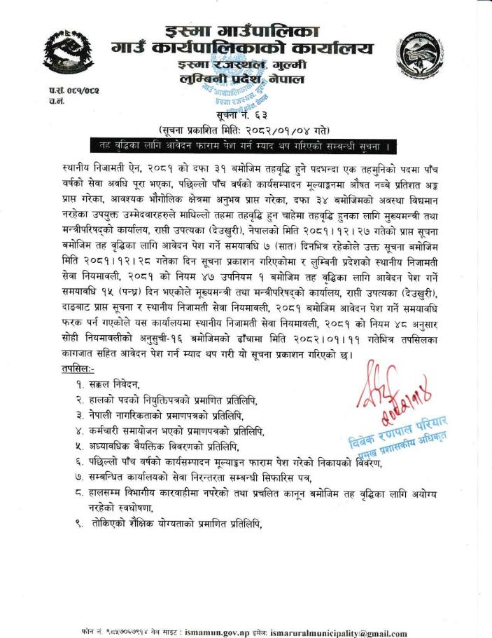 तह वृद्धिका लागि आवेदन पेश गर्न म्याद थप गरिएको सम्बन्धी सूचना ।