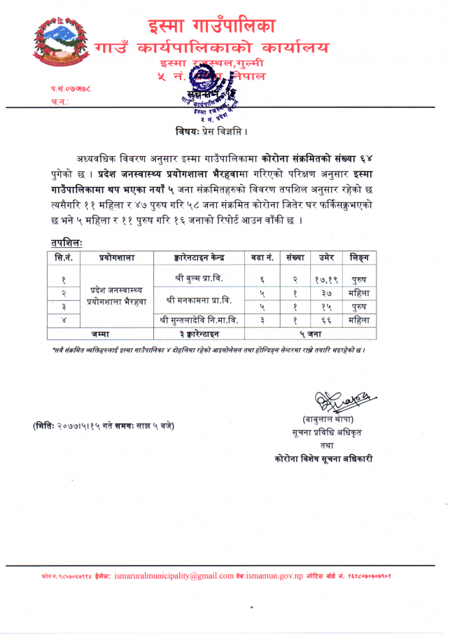 | वार्ड नं. | नाम थर | सम्पर्क नं. |