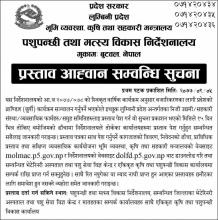 लुम्विनी प्रदेश पशुपन्छी तथा मत्स्य विकास निर्देशनालयको प्रश्ताव आह्वान सम्वन्धि सूचना ।