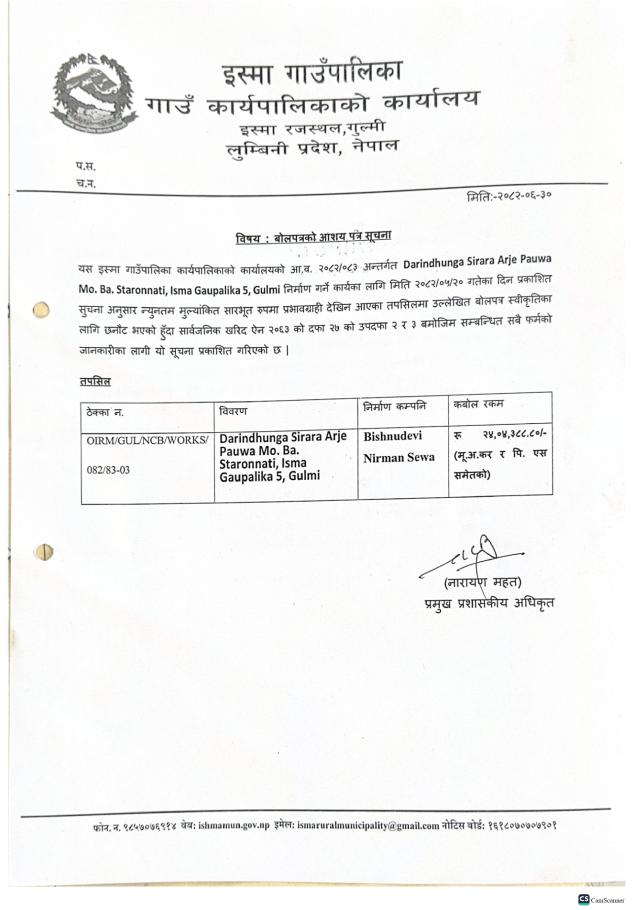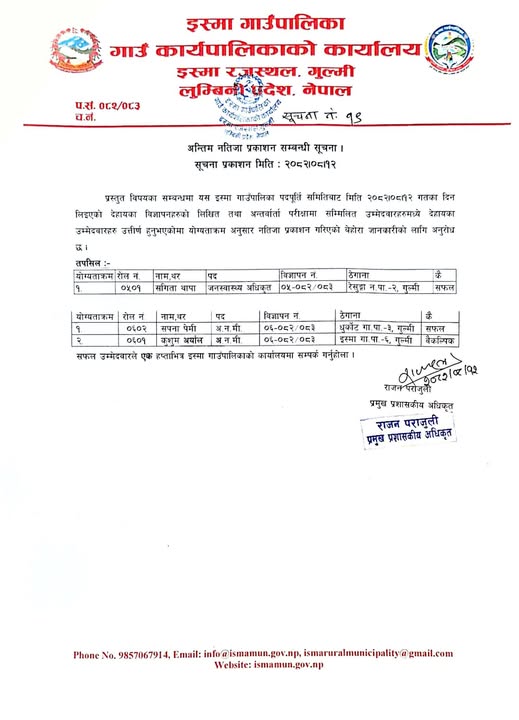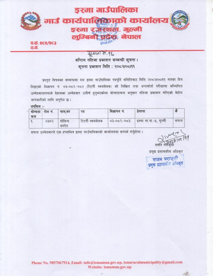 | वार्ड न. ५ इस्मा रजस्थल | झविन्द्र अर्याल | ९८५७०५७३०५ |