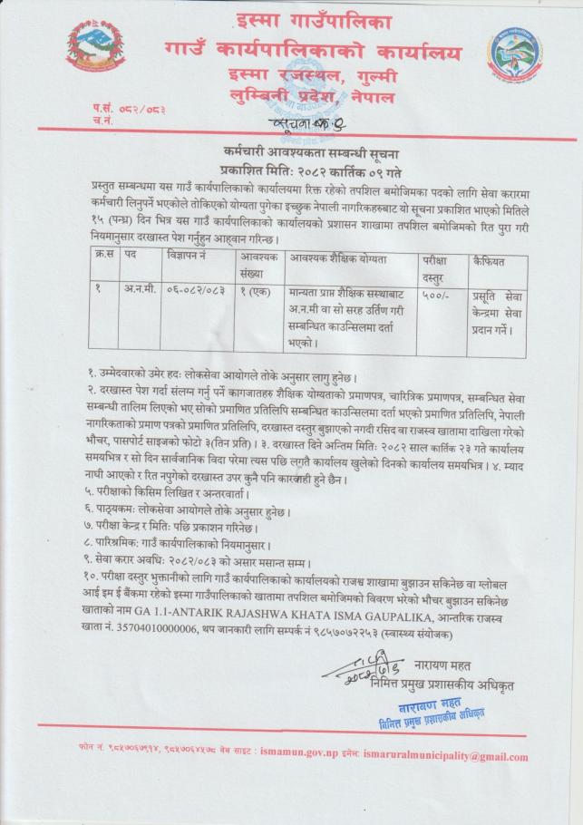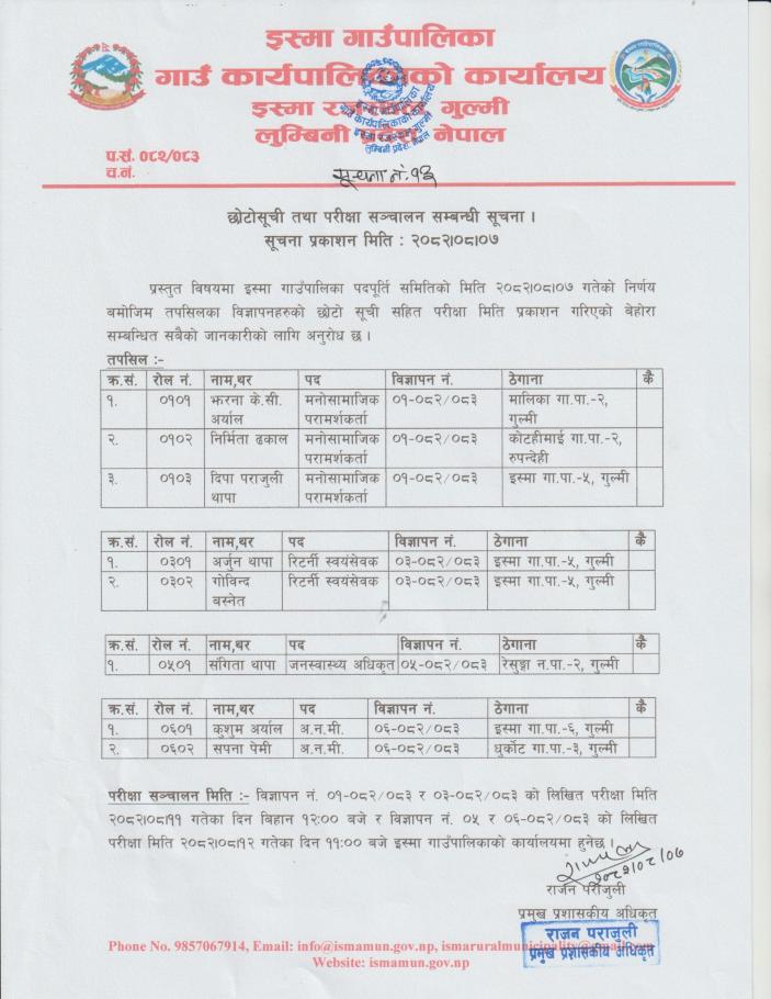| वार्ड नं. | नाम थर | सम्पर्क नं. |