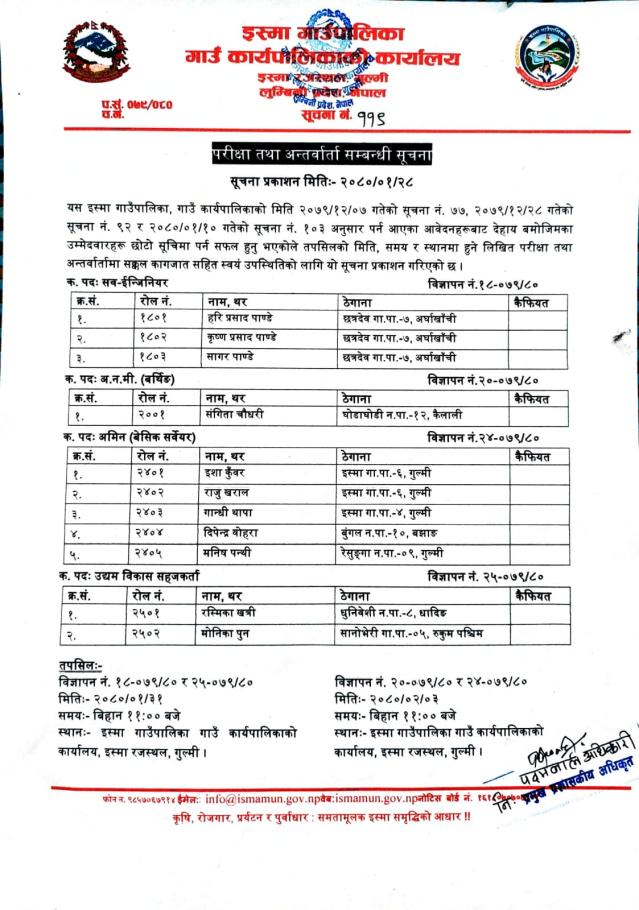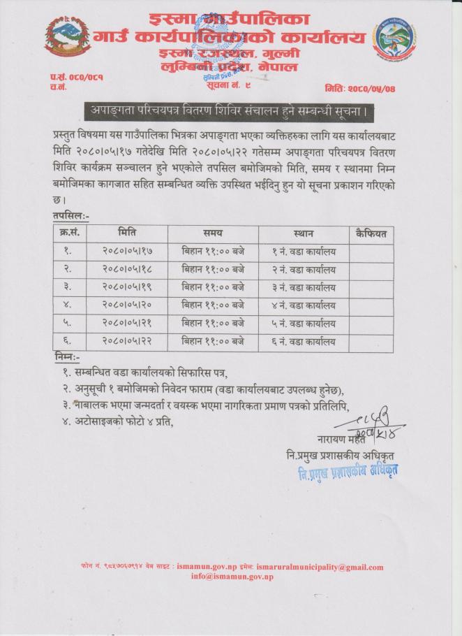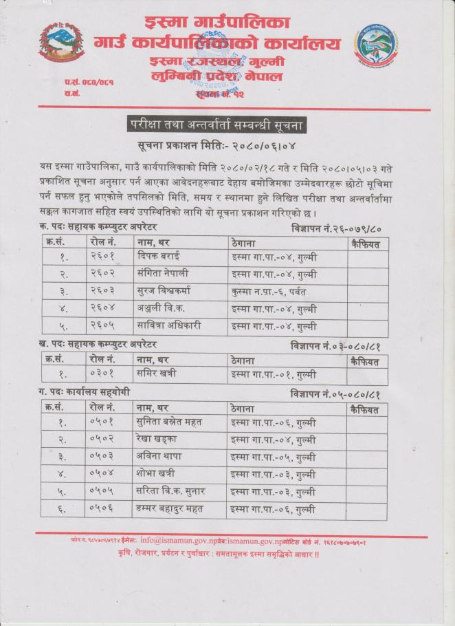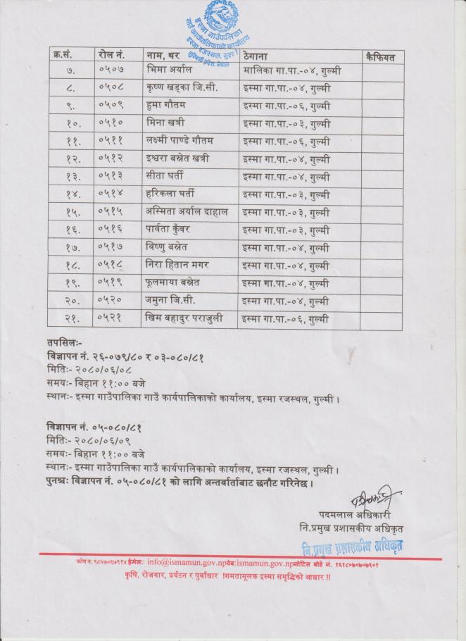 | वार्ड नं. | नाम थर | सम्पर्क नं. |