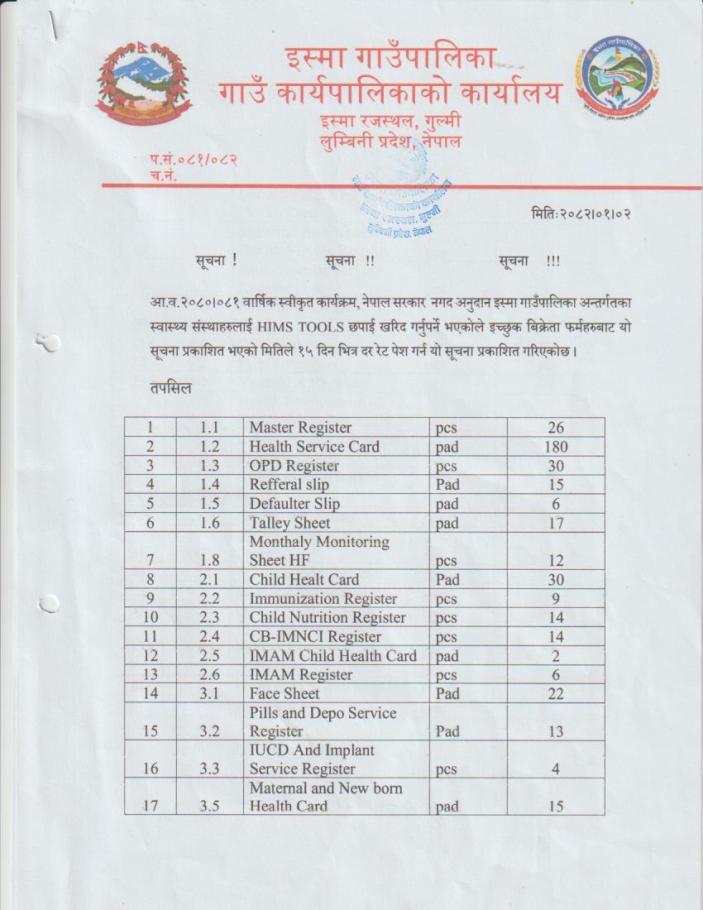 | वार्ड नं. | नाम थर | सम्पर्क नं. |