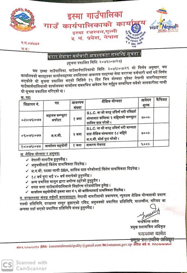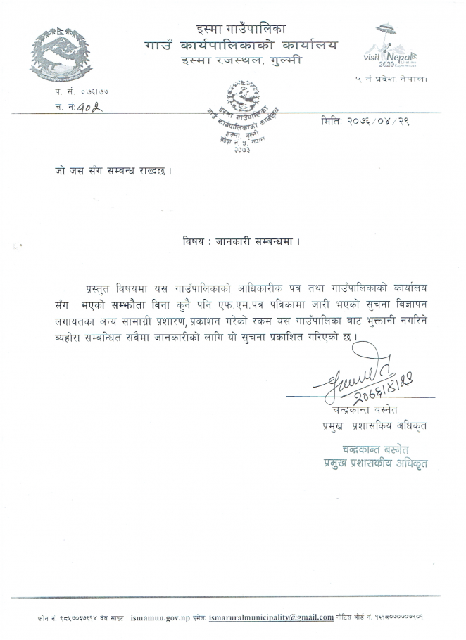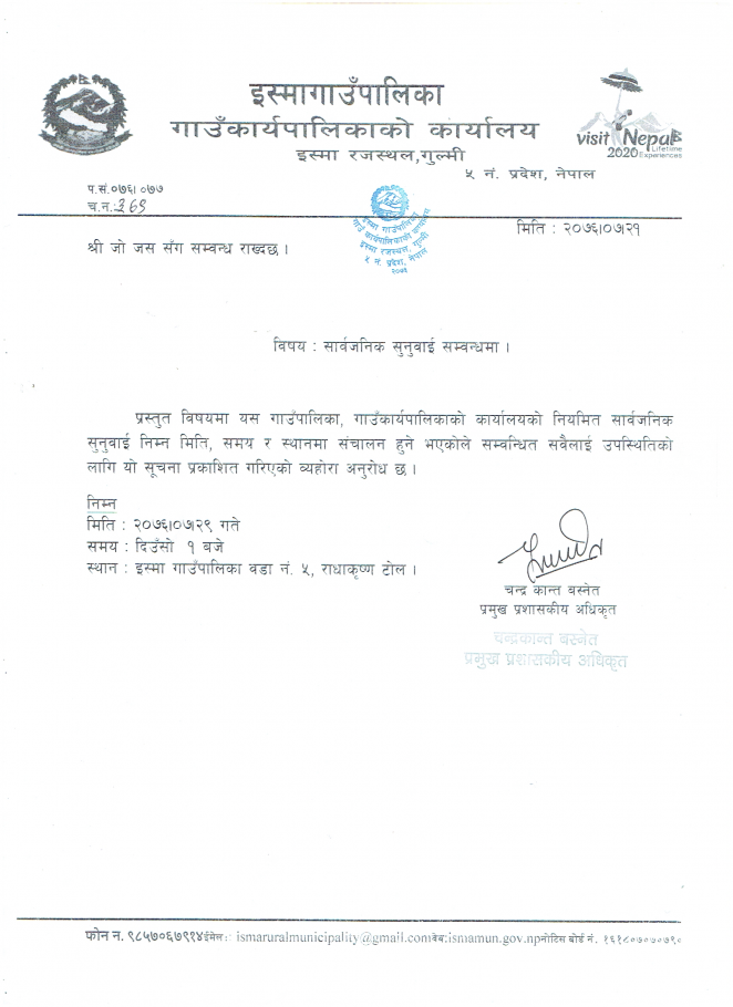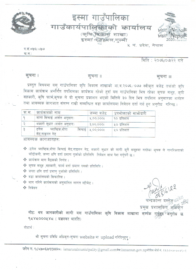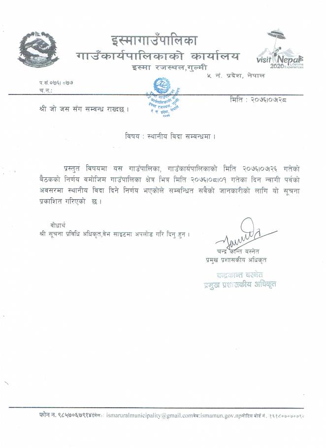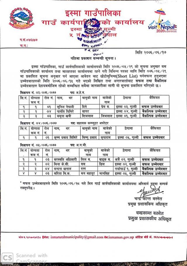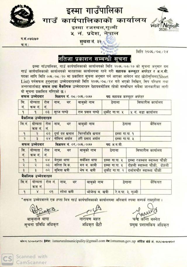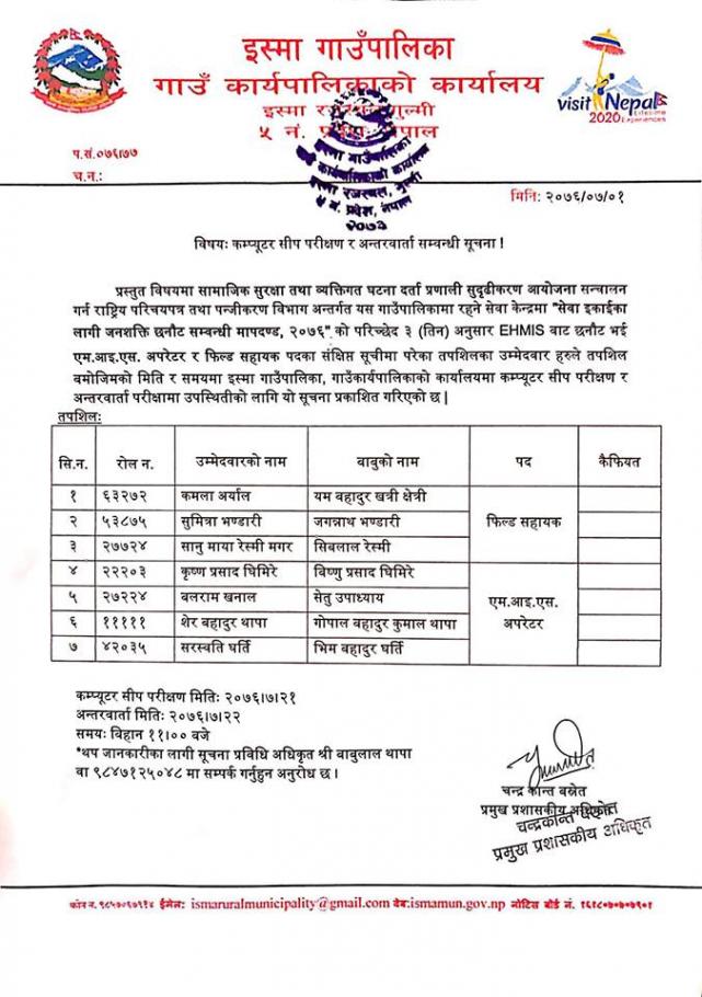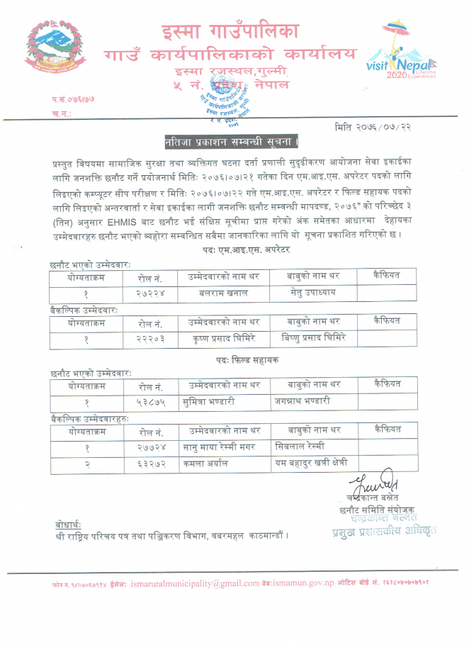 | वार्ड न. ५ इस्मा रजस्थल | झविन्द्र अर्याल | ९८५७०५७३०५ |