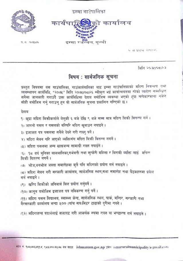 इस्मा गाउँपालिको आयोजनामा आज मिति २०७५/३/२३ सनिवारका दिन १ दिने नि:शुल्क आयुर्बेद स्वास्थ्य शिविर ३००(तिन सय) जना बढी बिरामीको स्वास्थ्य परिक्षण तथा औसधि वितरण गरि सु-सम्पन्न भयको छ|