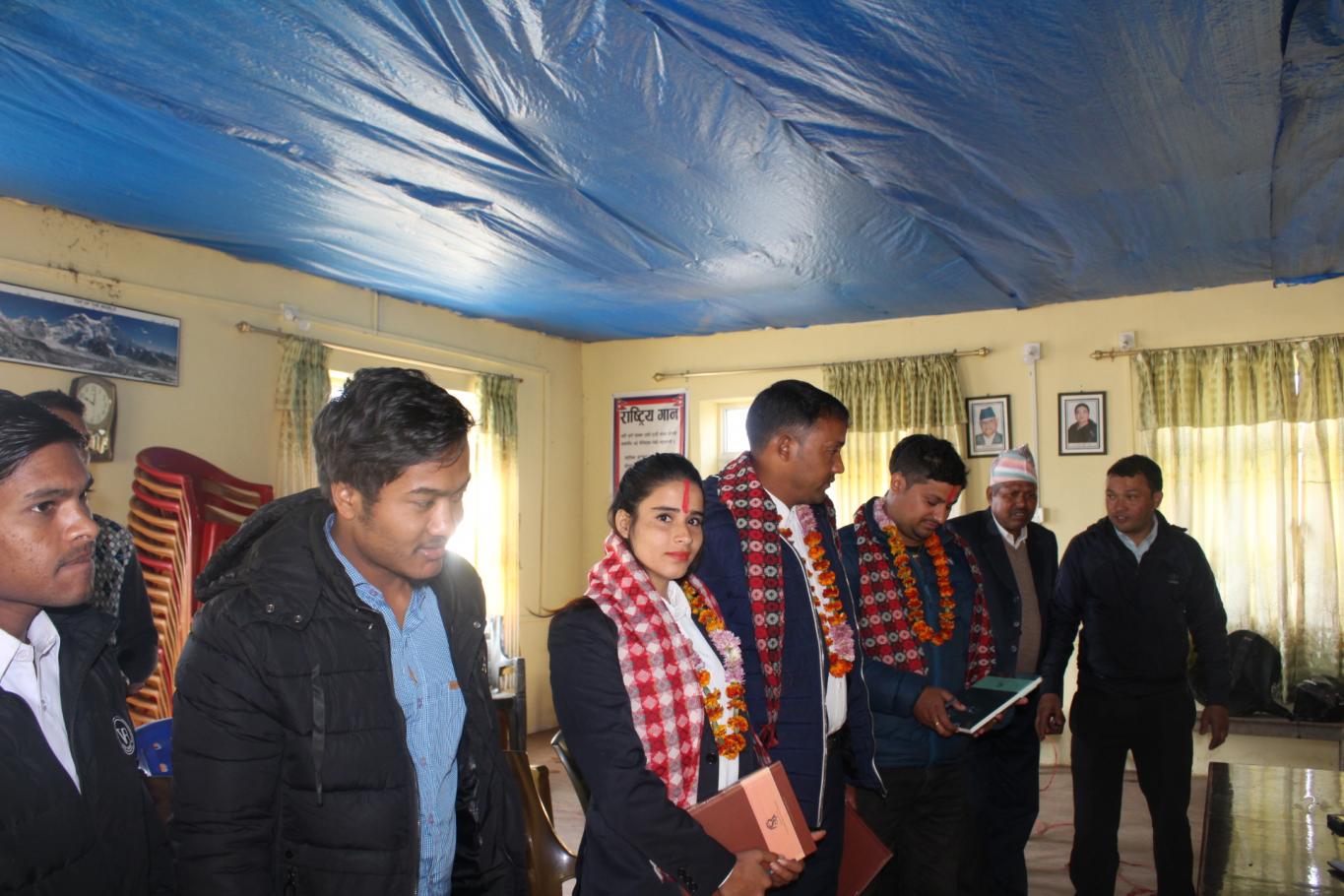 कर्मचारीहरु सह-लेखापाल मनोज भण्डारी, नायब पशु सेवा प्राबिधिक तुल्सी बहादुर थापा, सहायक महिला विकास निरीक्षक गंगा पन्थीको स्वागत तथा कृषि प्राबिधिक उदय बहादुर पासीको विदाई कार्यक्रम मिति: २०७५ मङ्सिर १२ मा सम्पन्न भयको छ|