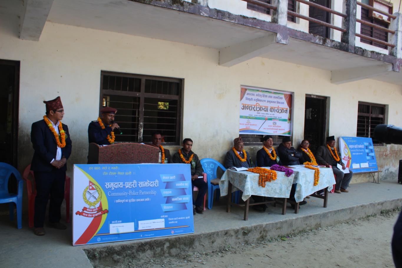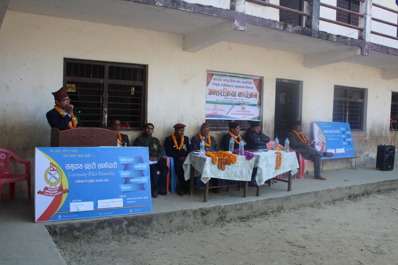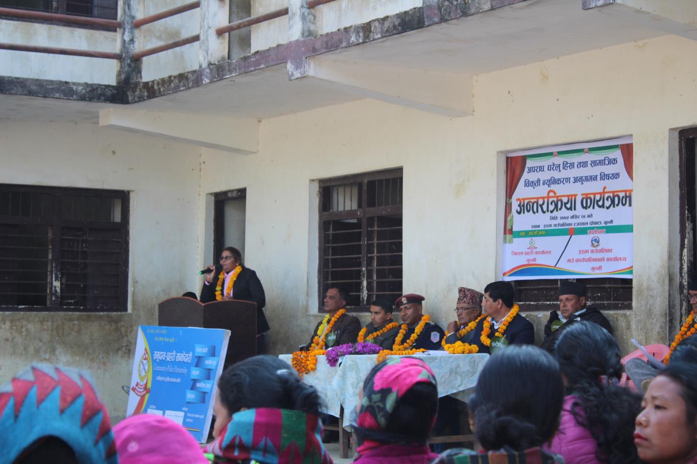 अपराध घरेलु हिंसा तथा सामाजिक बिकृति न्यूनीकरण अनुगमन विषयक अन्तरक्रिया कार्यक्रम इस्मा गाउँपालिका वार्ड नं.५ स्थित आनन्दपुर मा.वि.को प्रांगणमा जिल्ला समन्नय प्रमुख, जिल्ला प्रहरी प्रमुख तथा अनुसन्धान अधिकृत को आतिथ्यतामा सम्पन्न भयको छ|