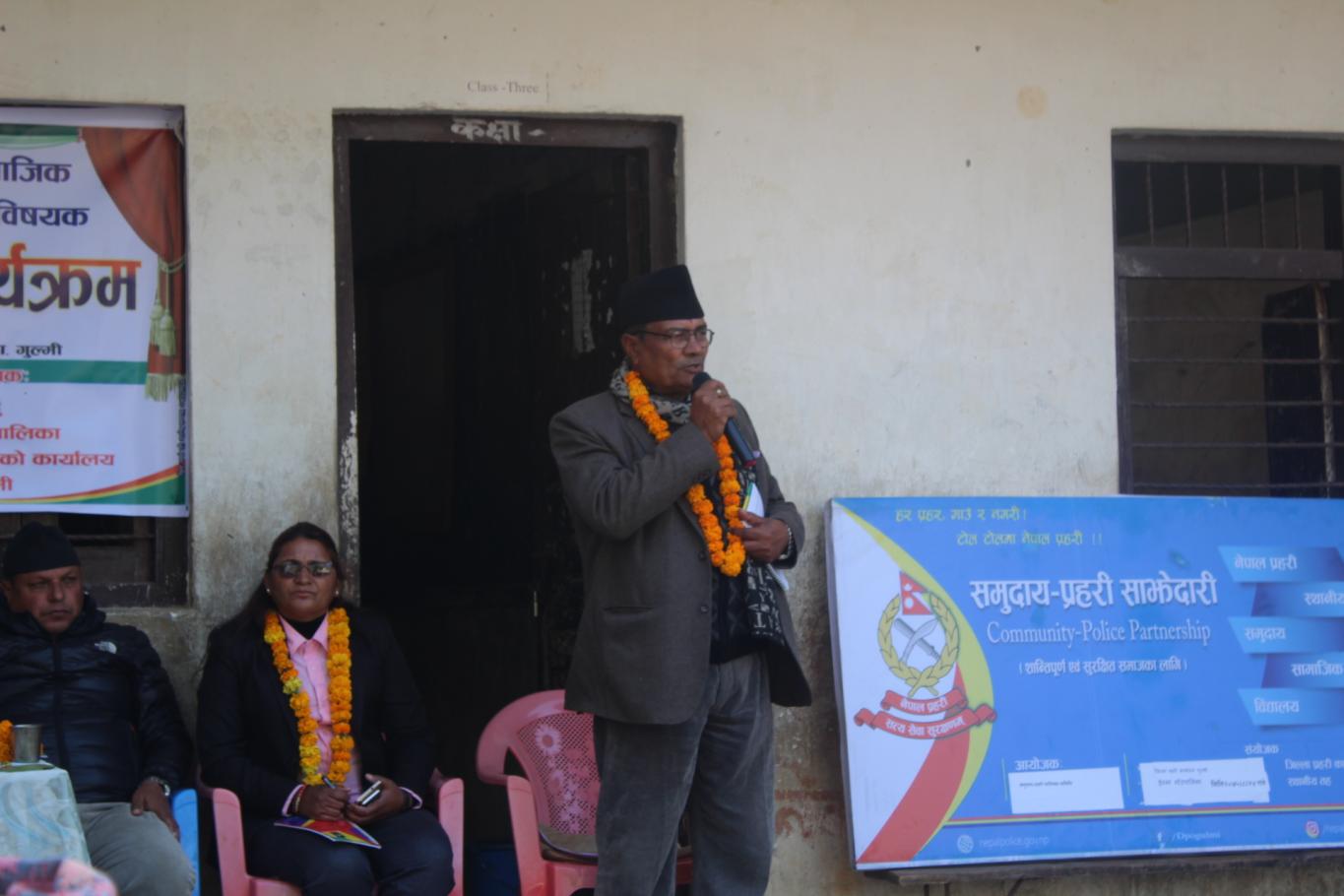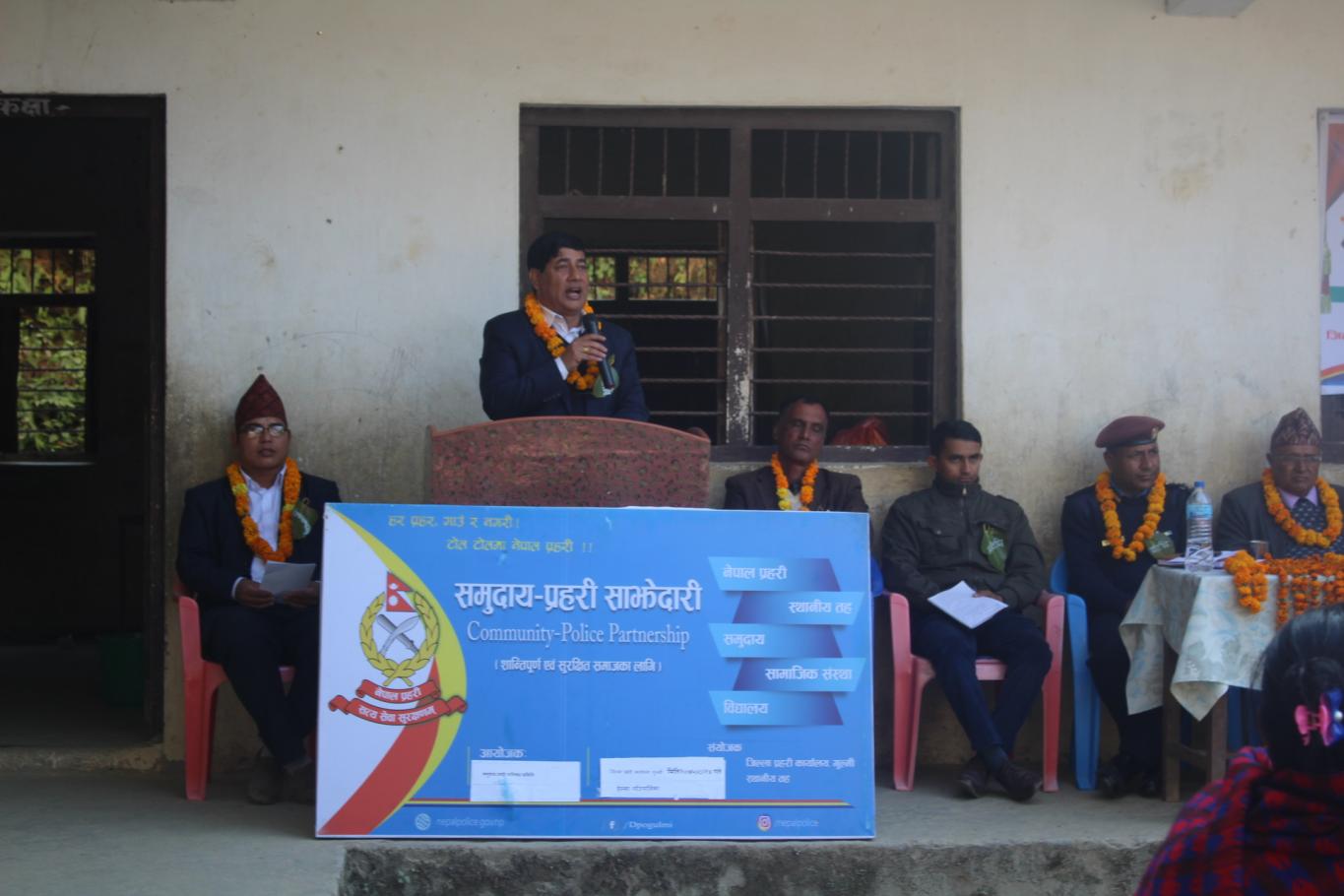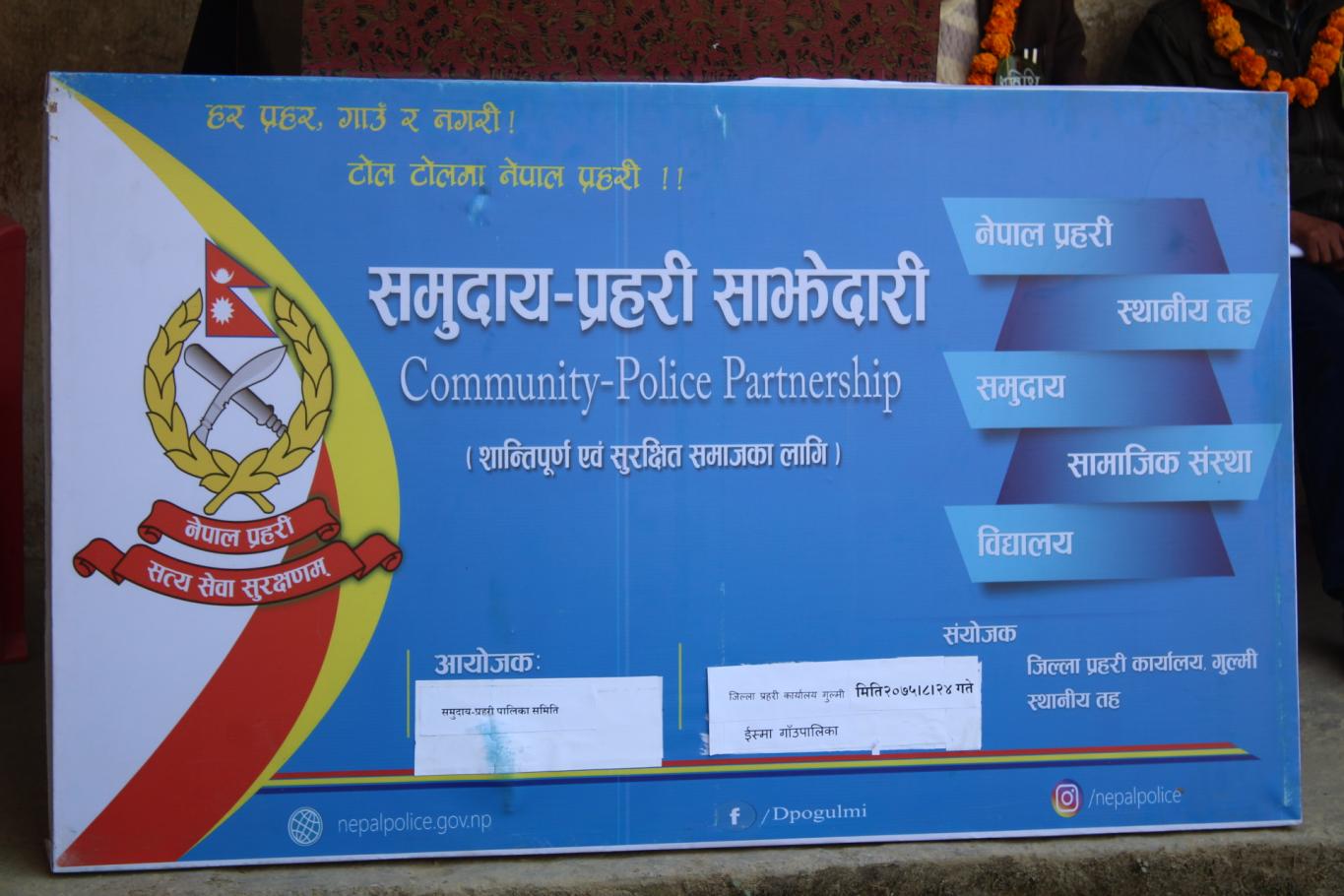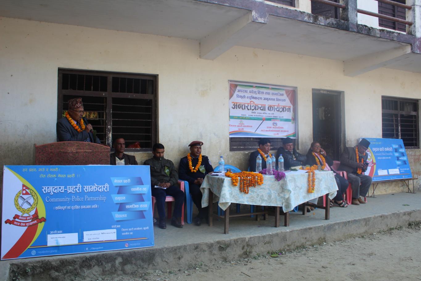 अपराध घरेलु हिंसा तथा सामाजिक बिकृति न्यूनीकरण अनुगमन विषयक अन्तरक्रिया कार्यक्रम इस्मा गाउँपालिका वार्ड नं.५ स्थित आनन्दपुर मा.वि.को प्रांगणमा जिल्ला समन्नय प्रमुख, जिल्ला प्रहरी प्रमुख तथा अनुसन्धान अधिकृत को आतिथ्यतामा सम्पन्न भयको छ|