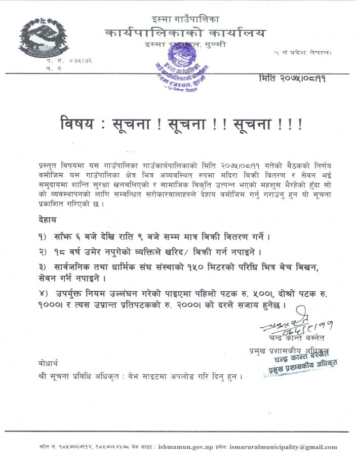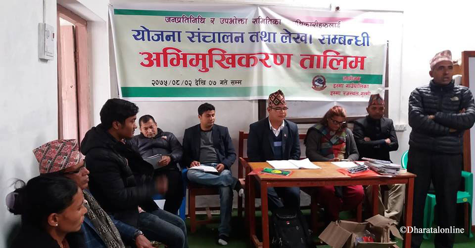 इस्मा गाउँपालिका द्वारा आ.व. २०७५/७६ मा संचालित योजनाका उपभोक्ता समितिका पदाधिकारी लाई अभिमुखीकरण कार्यक्रम मिति २०७५ मङ्सिर २ देखि ७ गतेसम्ममा ६ वटै वाडमा सम्पन्न भयको छ|