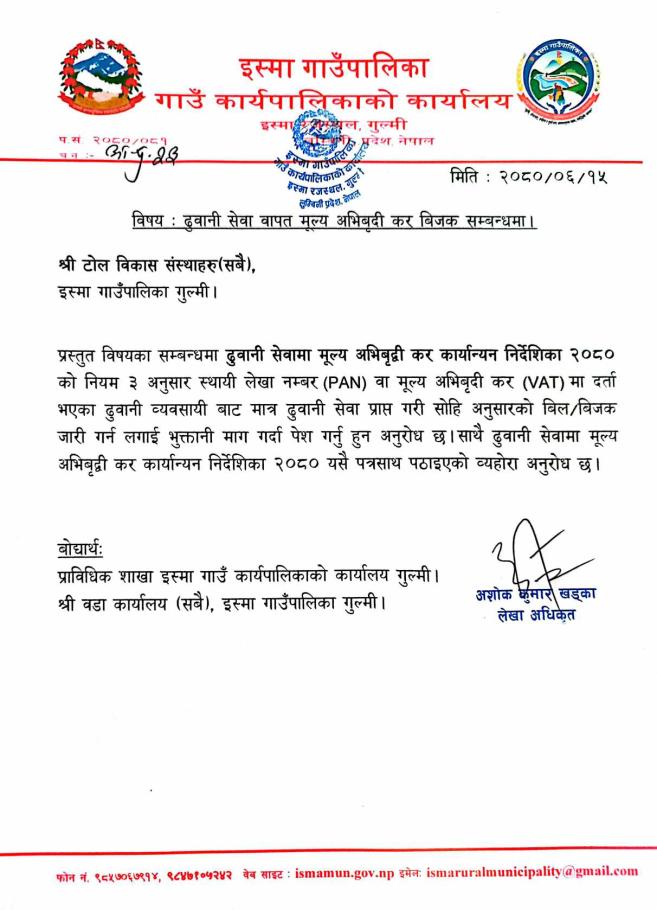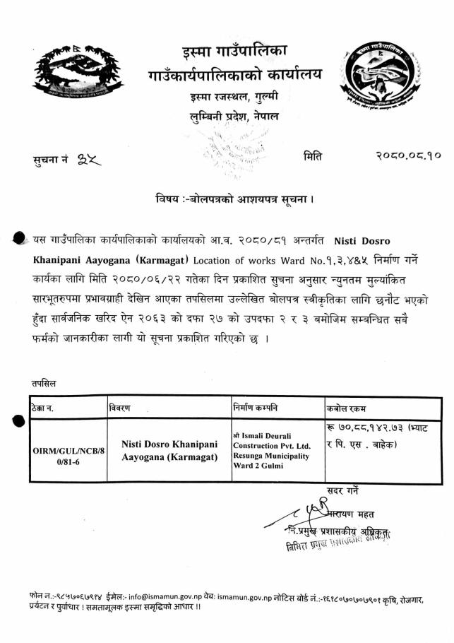 | वार्ड न. ४ दोहली | राजु बस्नेत | ९८४७२०४२०४ |