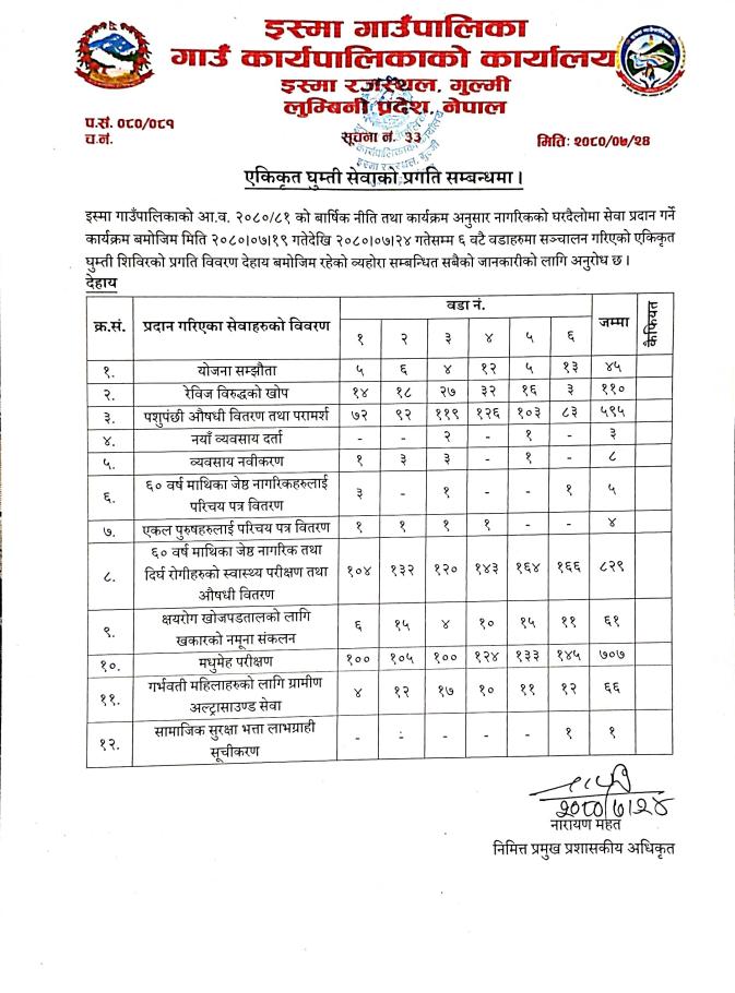 | वार्ड नं. | नाम थर | सम्पर्क नं. |